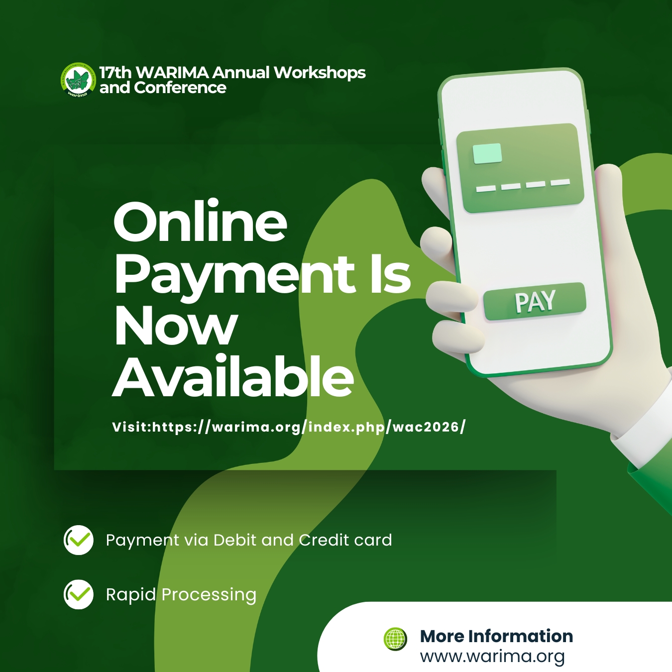 We are pleased to announce that online payment for the 17th WARIMA Annual Workshops and Conference (WAC2026) is now live!